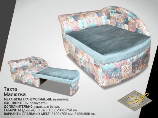 Дополнительная информация: Каркас выполнен из ДВП,фанеры и деревянного бруса (сосна). Элементы сидения и спальная часть ППУ. Опоры- пластик
