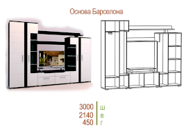 Стенка «Барселона» выполнена в стильном современном дизайне, прекрасно сочетающем в себе контрастность цвета, ассиметричное исполнение, стеклянные витринные модули и элементы подсветки. Фасады МДФ