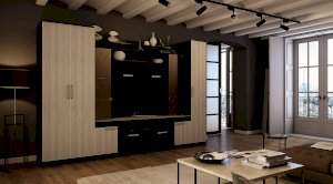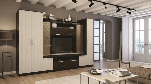 Организовать хранение вещей в комнате или гостиной можно с помощью пенала Фиеста. Модель представляет собой пять глубоких полок, спрятанных за распашной дверцей светлого цвета лоредо. Корпус изделия выполнен из ЛДСП в цвете венге. Фасад дополнен удобной удлинённой ручкой.