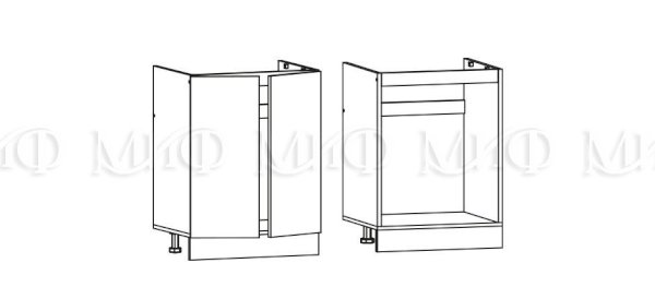 Глубина нижних шкафов без учета столешницы: 444 мм, с учетом столешницы 600 мм