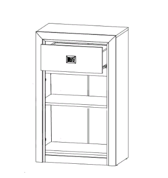 Тумба разделена на 2 отделения: выдвижной ящик на металлических роликовых направляющих и отделение с полкой за распашной глухой дверью.